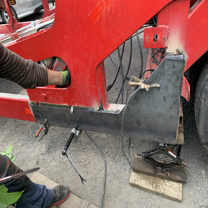 Heavy diesel machinery service: welding of metal parts.